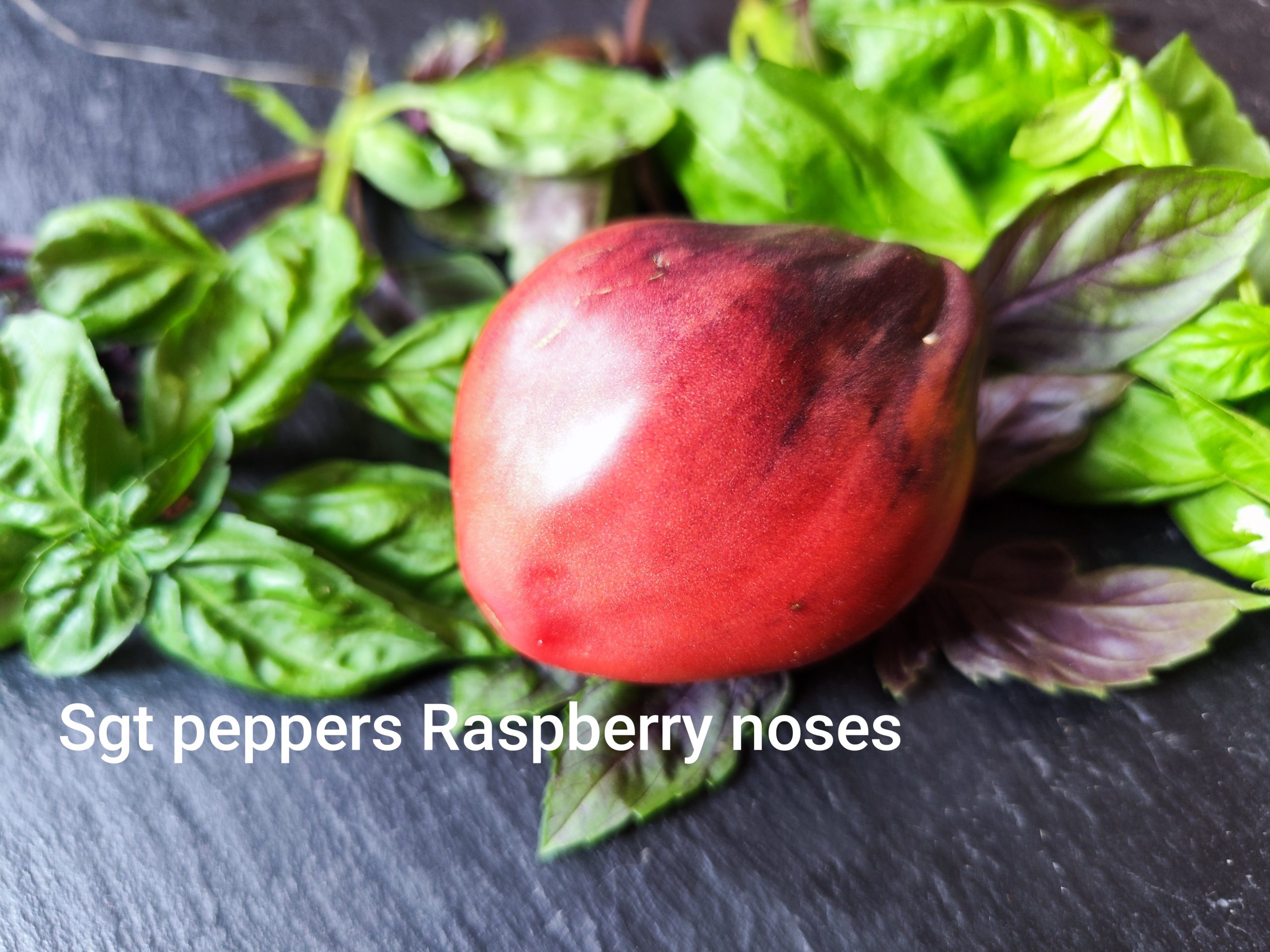 Die ‚Sgt. Pepper’s Raspberry Noses‘ ist eine bemerkenswerte Tomatensorte, die durch ihre elongierten, herzförmigen Früchte mit leichten Rippen auffällt. Die Schale zeigt ein attraktives Himbeerrot mit Anthocyan-Bereichen, während das Fruchtfleisch saftig, dicht und süß im Geschmack ist. Diese Sorte eignet sich hervorragend für den Frischverzehr, in Salaten oder zur Zubereitung von Saucen. Die Pflanzen wachsen kräftig und erreichen eine Höhe von bis zu 1,9 Metern, weshalb eine stabile Stütze empfohlen wird. Der Anbau ist sowohl im Freiland als auch im Gewächshaus möglich.