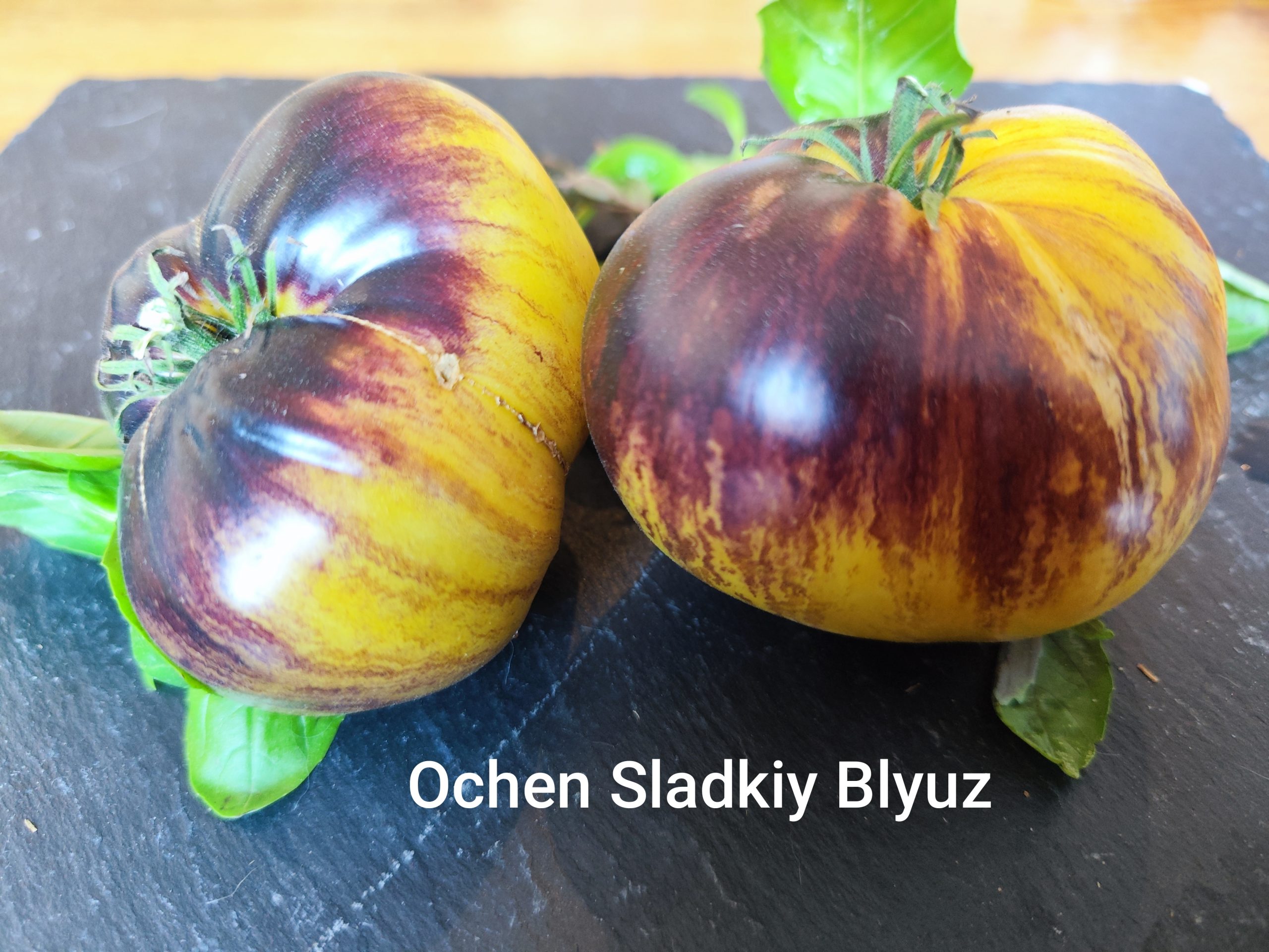 Die Tomatensorte Very Sweet Blues ist eine indeterminierte Stabtomate mit einer Wuchshöhe von etwa 1,80 m. Ursprünglich stammt sie aus Russland und geht auf eine Privatselektion von Sofia Saakova aus der Region Stawropol zurück. Die Sorte befindet sich wohl noch in der Stabilisierung (F5-F6, Stand 2024), daher können leichte Aufspaltungen auftreten.
