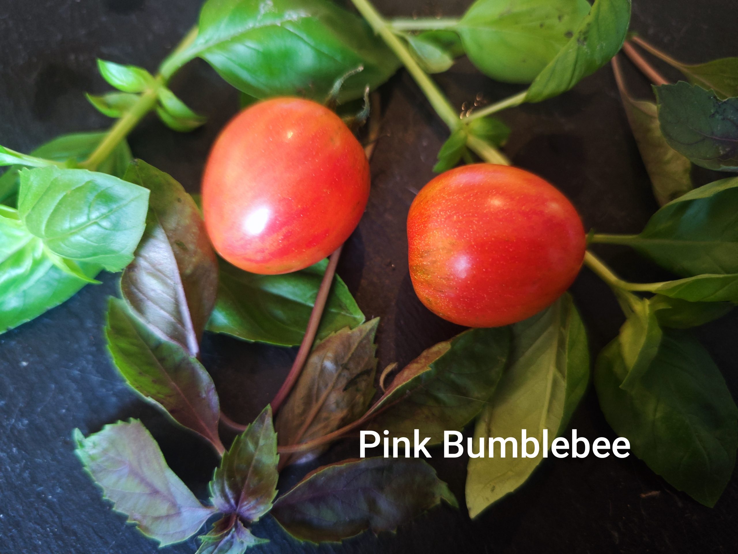 Pink Bumblebee oder die „Rosa Hummel“ ist eine Sorte der Bumble Bee Reihe von Artisan Seeds. Die pflaumenartige Frucht ist rund bis leicht oval geformt. Die Haut ist rosa mit deutlichen orange-goldenen Flammen überzogen. Der Geschmack ist mild und süß. Nach etwa 70 Tagen sind sie erntereif. Die kräftigen Pflanzen sind ertragreich und bleiben eher schmal im Wuchs. Früchte werden bis spät in den Herbst produziert, erst der Frost beendet die Saison für diese tolle Sorte.